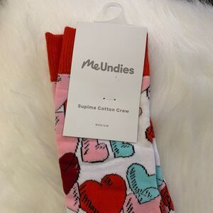 MeUndies Supima Cotton Red Pink Valentine Hearts crew socks size Medium