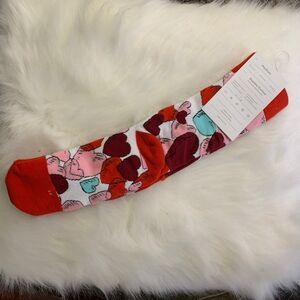 MeUndies Supima Cotton Red Pink Valentine Hearts crew socks