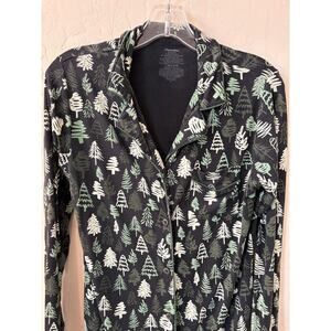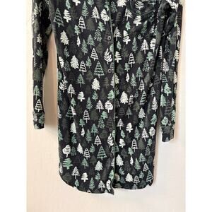 MeUndies Sz S Modal Button Down PJ Dress Long Sleeve Tree Christmas Print
