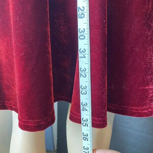 MeaReor L Red Velvet Dress Choker V Neck Glam Party Date Romantic Babydoll Vamp