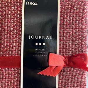 Enhance your writing experience with this Mead red fabric journal, perfect for journaling, creative writing, note-taking, or even as a diary. Featuring a textured red cover and 200 lined pages, this compact notebook (6” x 8.5”) is ideal for students, professionals, or anyone who loves stylish and functional stationery. Its durable fabric cover and ribbon bookmark make it perfect for carrying in your bag, purse, or backpack for writing on the go.