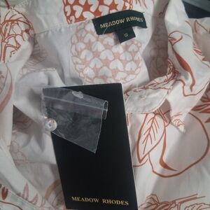 Meadow Rhodes Ric Rac Fruit Print Dress Small 100% Cotton Midi Tropical Modest