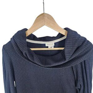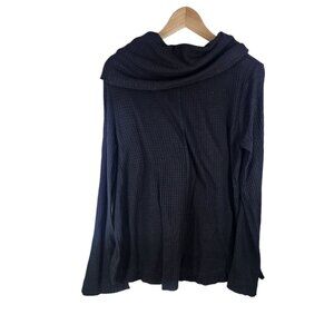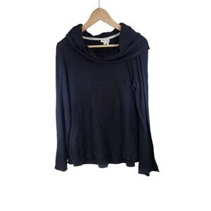Meadow Rue Anthropologie Black Waffle Knit Long Sleeve Cowl Neck Tunic Top Shirt