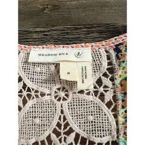 Meadow Rue Anthropologie Crochet Lace Peasant Blouse sheer sz S . See pictures with measurements. Gently used preowned condition. Color maybe slightly different due to light