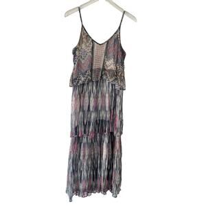 Meadow & Rue Anthropologie Josie Tiered Maxi Dress 2 Metallic Lurex Stripe