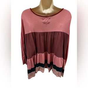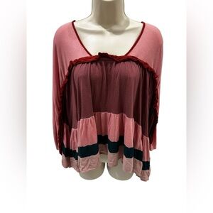 Meadow Rue Anthropologie Mina Colour Block Ruffle Top, Pink- Has wash wear!!!! See photo