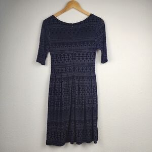 Meadow Rue Anthropologie Navy Cocktail Fancy Velvety Textured Dress Size Small