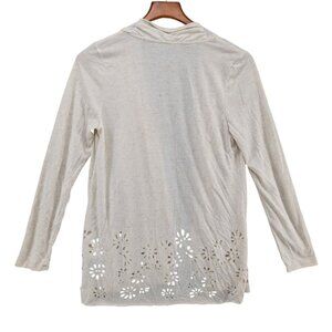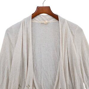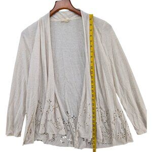 Meadow Rue Anthropologie Open Cardigan Womens Oatmeal Laser Cut Linen Blend Sz S