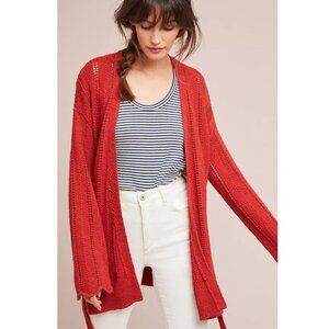 Meadow Rue | Anthropologie Priscilla Pointelle Cardigan in Rust Red | Size Small