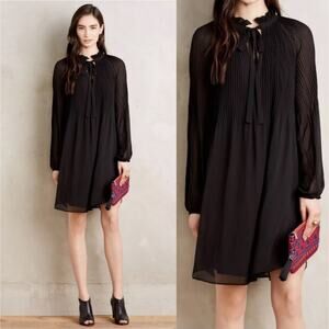 Meadow Rue Anthropologie Saoirse Black Tunic Dress Size M Pleated Minimalism