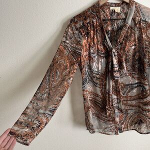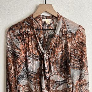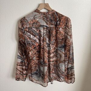 Meadow Rue Anthropologie Top Womens Medium Paisley Peasant Blouse Sheer Boho