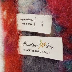 This is a Meadow Rue pullover in a size MP. It is fuzzy/furry all over. It is grey, pink, purple, red, and some green. It is in good condition.