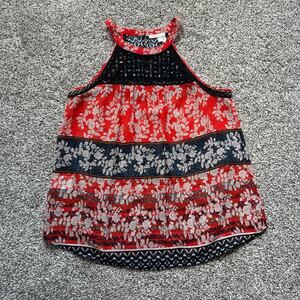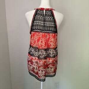 Meadow Rue Anthropologie black, orange and cream floral sleeveless top size S
