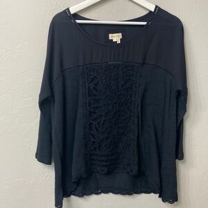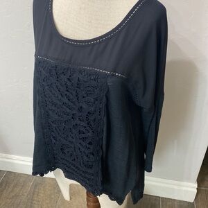 Meadow Rue Anthropologie black 3/4 sleeves top size small.NWT.Length is 24” and chest is 21”