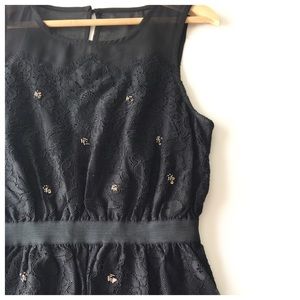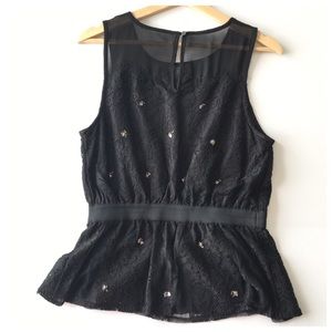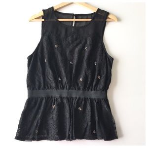 Meadow Rue Black Lace Silver Beaded Peplum Tank