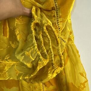Meadow Rue Sheer Velvet Burnout Blouse 2 Gold Floral Peasant Anthropologie Sz 4