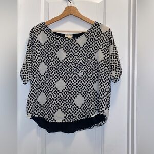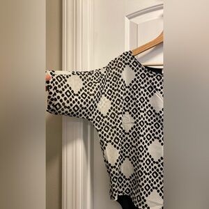 Elevate your wardrobe with this chic black and white top. Perfect for any occasion, this stylish piece offers a modern look with its bold pattern.