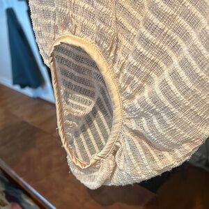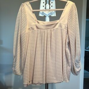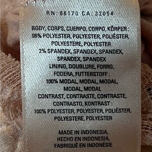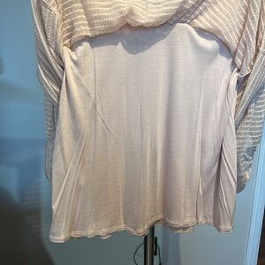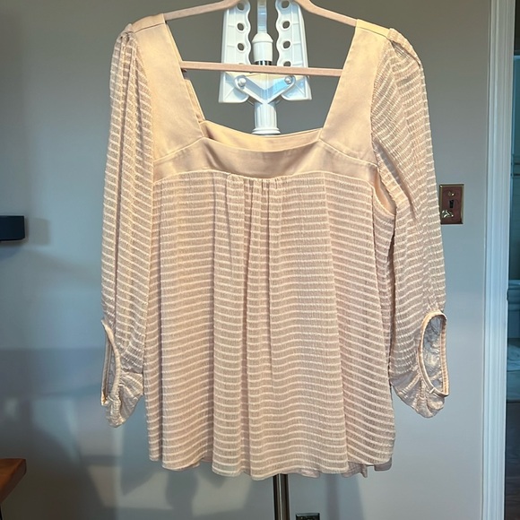 Very pale peach blush. Loose and flowy. Sheer with lining except for sleeves.