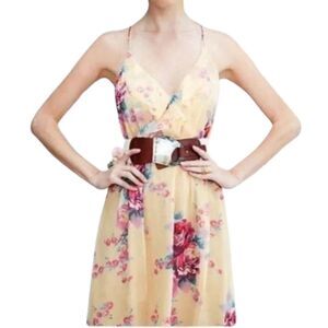 Meadow Rue Yellow Floral Print 100% Silk Ruffle Accent Dress Sz 6 Small