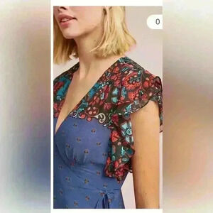 Meadow Rue by Anthropologie Bastide Floral Wrap Top. Size 6. Tiered ruffle sleeve. Length 25in, p2p 17in, sleeve 3in