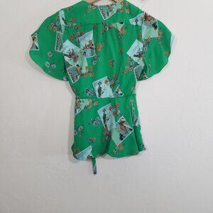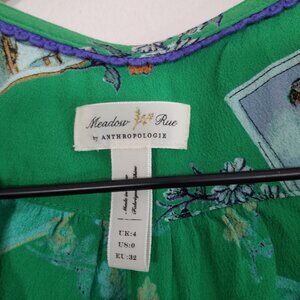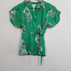 Meadow Rue by Anthropologie Wrap Top Floral Green V-Neck Blouse Size 0