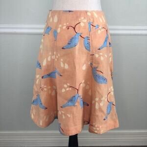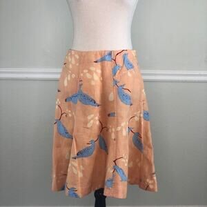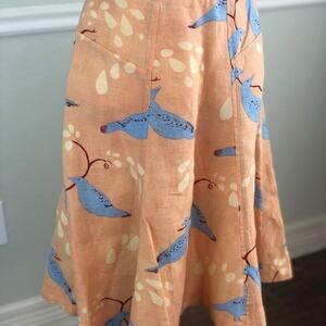 Meadow Rue Linen Orange Skirt with Blue Birds Size 0