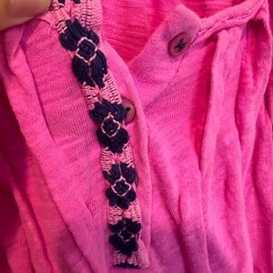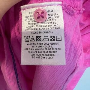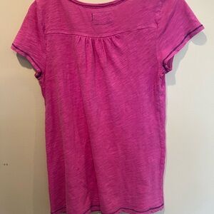 Chic and comfortable pink short sleeve top, perfect for casual outings. Has light wear from washing. 100% cotton. E6