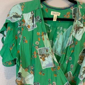 Meadow rue by Anthropologie green wrap bon voyage blouse 14