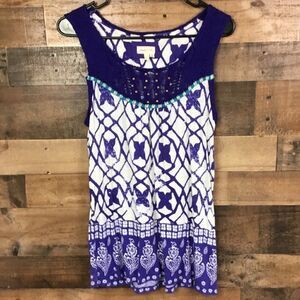 * Color: Purplish Blue and White with a band of turquoise and gold threading at the bust-line