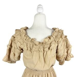 With short sleeves and an elasticated cuff. Gathered waist for a flattering fit and cotton lace detailing throughout