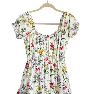 Drawstring neckline and short puff sleeves with elastic cuffs