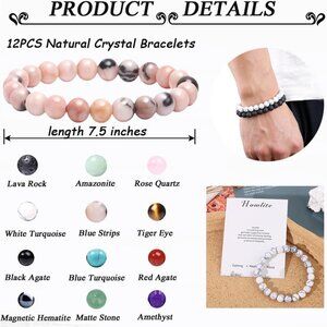 Meaningful Crystal Bracelets for Wellness - 12PCS Beaded Set with Gift Cards