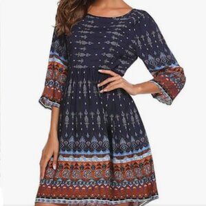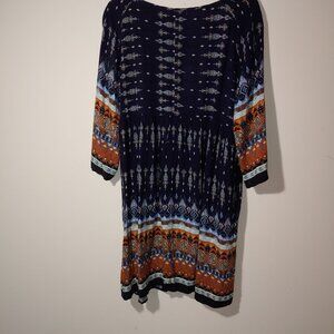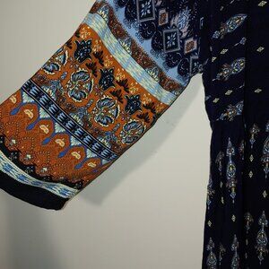 Meanor Boho Empire Waist Floral Pleated Midi Dress Size XL NAVY LUE