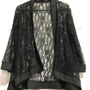 Measeor Black Lace Crochet Lace 3/4 sleeve open front Cover up Cardigan- Size XL