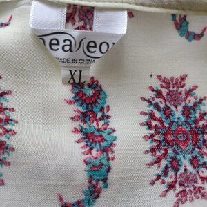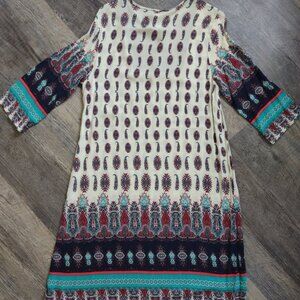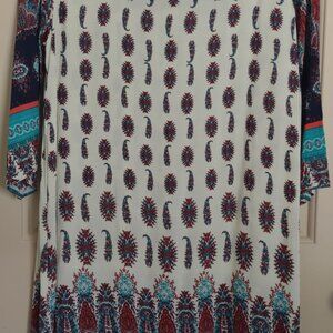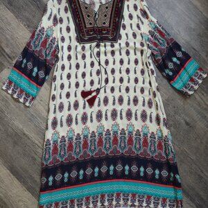 Measeor Womens Dress Beige w/Multiprint + Embroidery Neck Sz XL