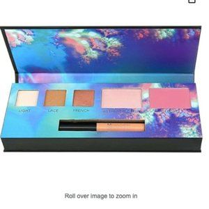 Includes 3 eyeshadows, 2 blush/highlighter, and 1 lip-gloss