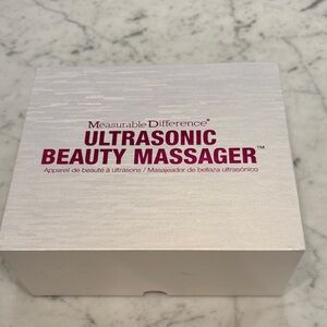Ultrasonic beauty massager in a sleek white box. Ideal for skincare routines.