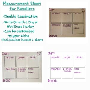 Measurement/Info Sheet for Resellers - Customizable - Comes with 2 Sheets