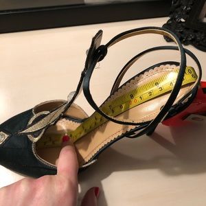@ohsococo here are the measurements. I pressed the tape measure down from the very tip of the shoe to the top of the sole, so you can measure another heel that you have that same way to see how they compare.