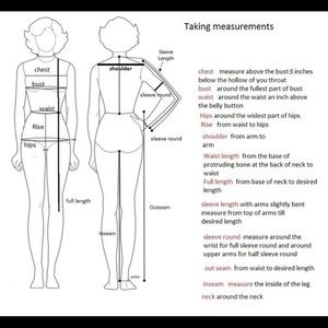 I try to provide the essential (approximate) measurements on items. Clothing is measured laying flat. If you need additional measurements, please don’t hesitate to ask. I am happy to assist you. All measurements are approximate (I am only human). I only ask that you remain patient while I gather the item and take the requested measurements. Please keep in mind that I do have a family that also requires my attention. Thank you!!