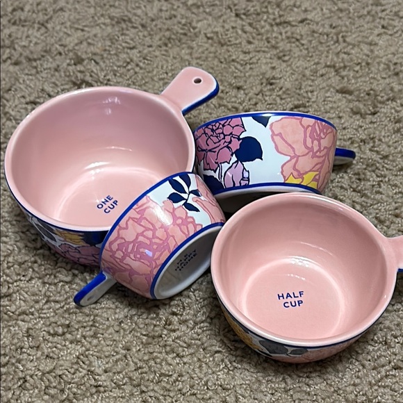 New in box. Only taken out to take pictures. Set of gorgeous Margot Elana ceramic measuring g cups. 1/4; 1/3: 1/2 and 1 cup. These are so pretty!!
