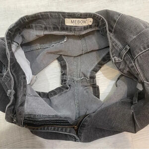 Mebon by Machine Jeans M High Rise Grey Stone Washed Distressed Shortie Shorts