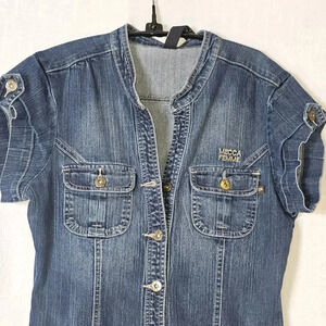 Mecca Femme Y2k Blue Denim Retro Button Down Jumsuit SZ 7/8