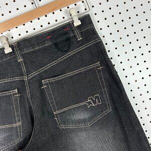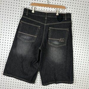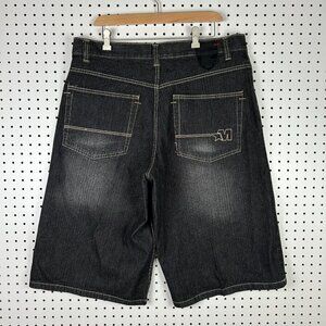 Mecca Gothic Black Jean Shorts 38 Skater Wide Leg Baggy Patch SOUTHPOLE STYLE