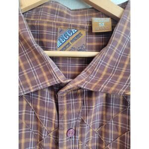 Mecca Mens Button-Up Collared Long Sleeve Shirt 5X Brown Plaid Windowpane Y2K