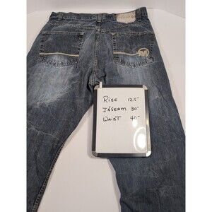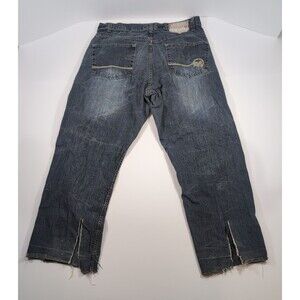 Mecca USA Mens 40x30 Dark Blue Straight Leg Denim Jeans Baggy Cut Off Slit Leg