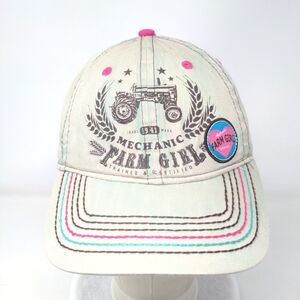 Mechanic Farm Girl Trained & Certified Strapback Hat Tan One Size Adjustable
