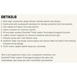 With a soft sweater-knit fleece liner, a waterproof membrane, and Durahide Goat Leather Technology throughout the palm, this Intermediate Layer keeps you both comfortable and protected.