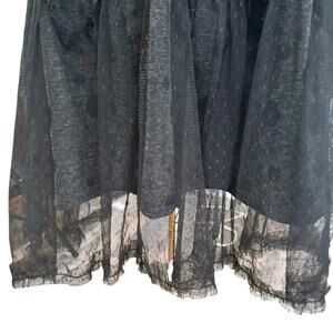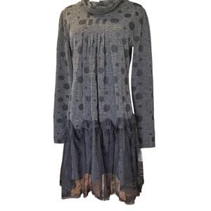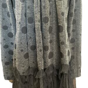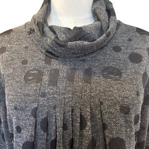 Mechant Dress Cowl Neck Sheer Lace Over Lay Ruffle Jersey Gray Black Dots SZ XL