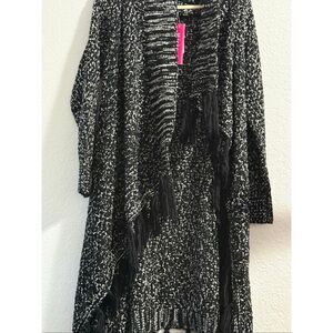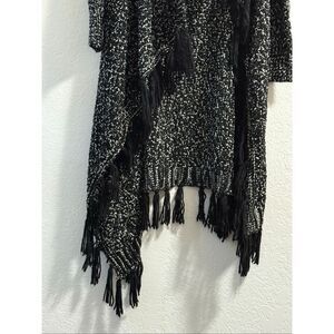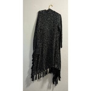 Mechant Womens Black Marled Fringe Long Open Duster Cardigan Sweater one size
